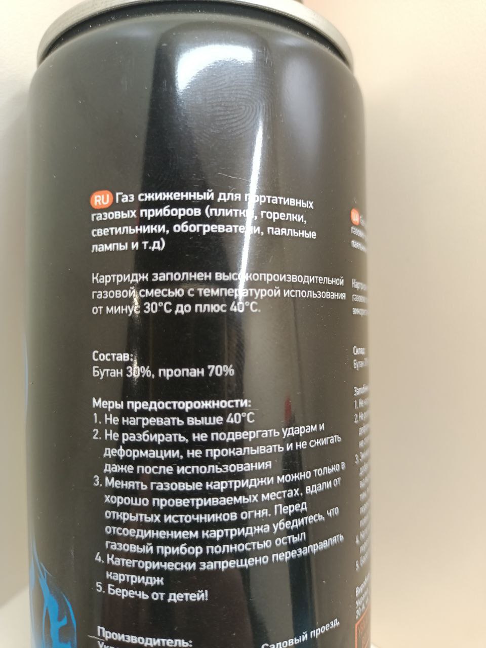 Газ зріджений для портативних газових приладів (плитки, світильники, паяльники, обігрівачі, паяльні лампи та ін.)