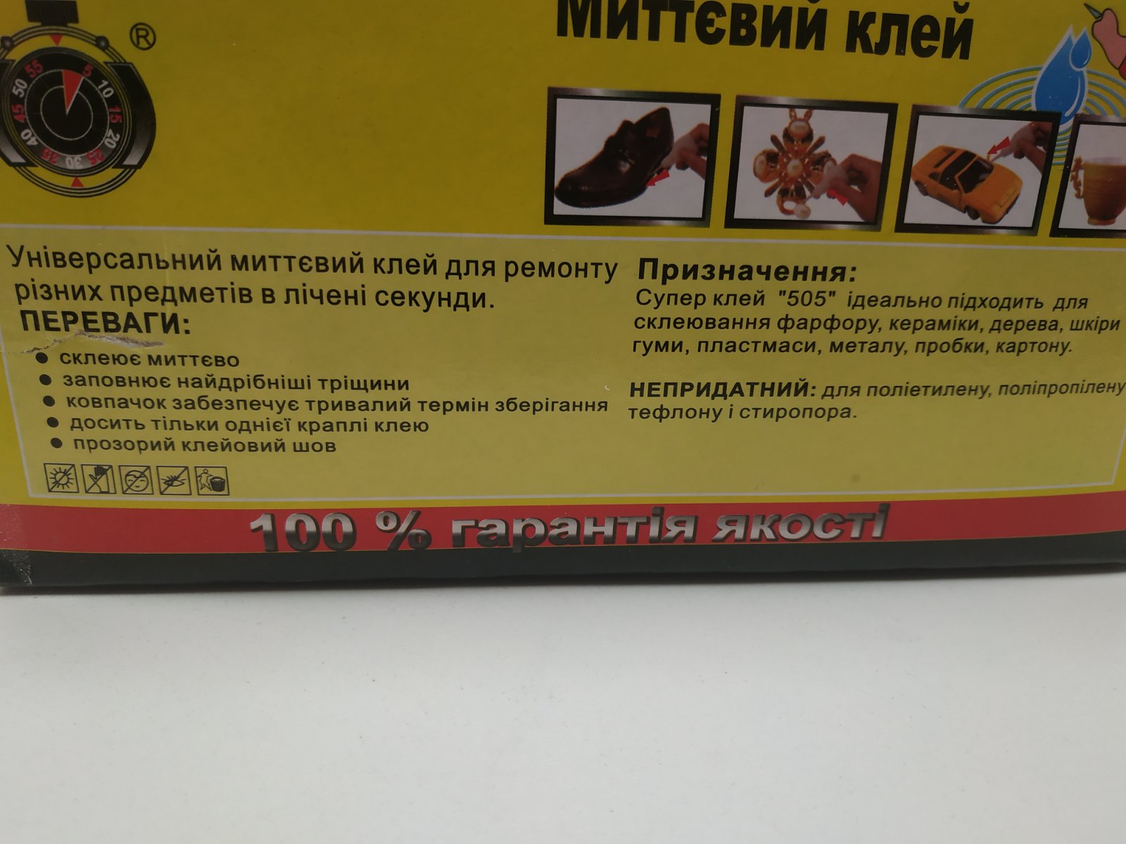 Супер клей 505 для моментального склеювання різних матеріалів і поверхонь.