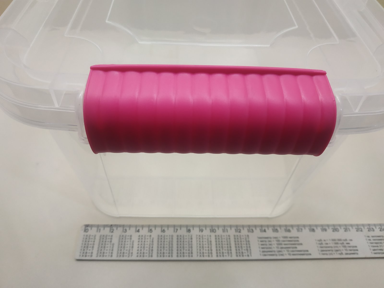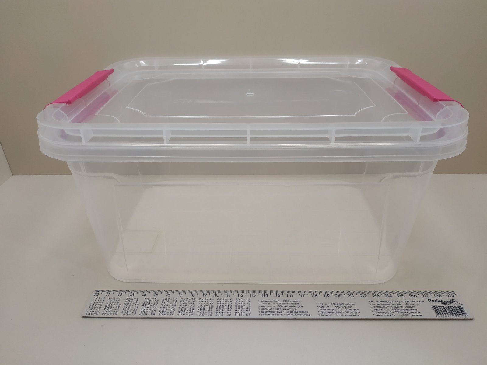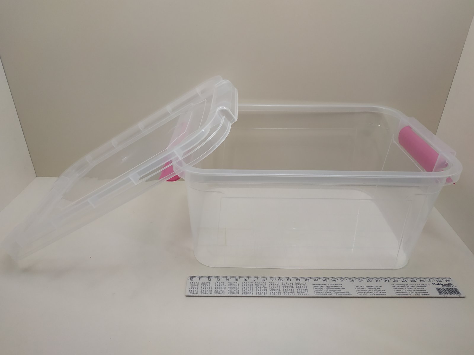 Контейнер харчовий 6 літрів з застібками, які щільно утримують кришку.