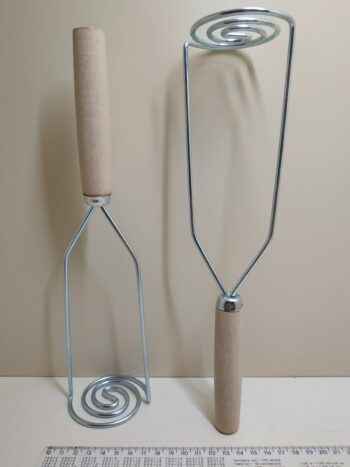 Толкушка металева з дерев’яною ручкою у формі спіралі