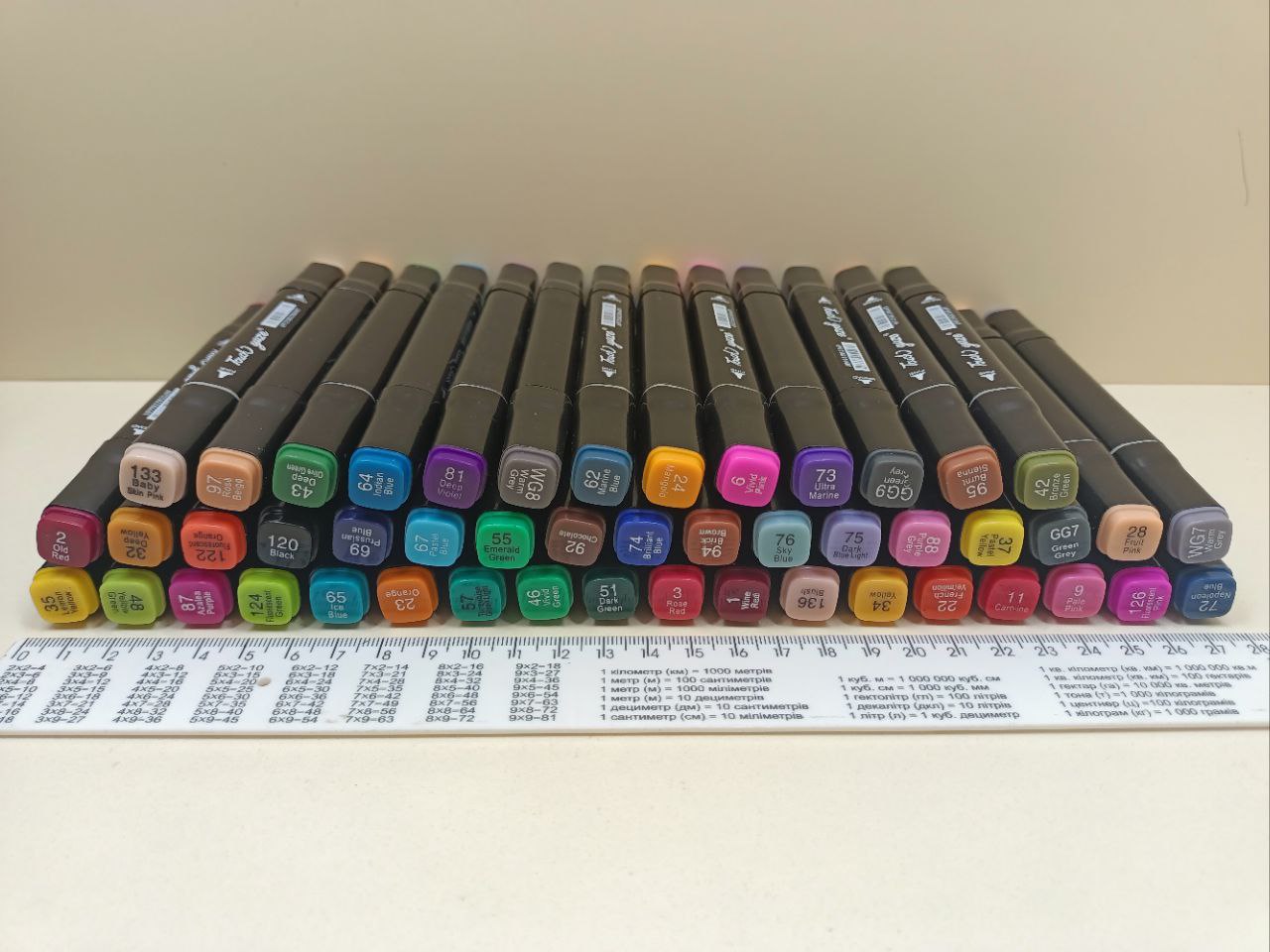 Маркери мають спиртову основу, що дає змогу створювати красиві колірні переходи