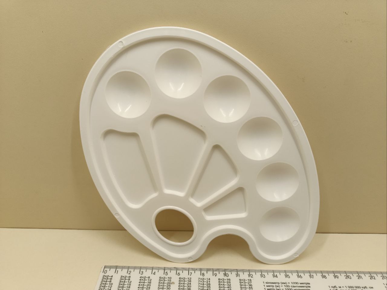 Станьте першим, хто залишить відгук про “Палітра художня для малювання пластикова овальна на 10 фарб біла”